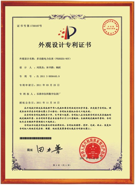 外觀設(shè)計(jì)專利證書1